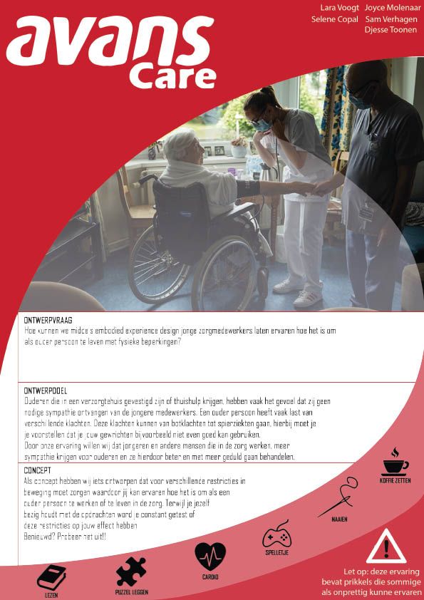 During this project, we focused on the care that elderly people receive in an elderly home. Because I work at an elderly home, I often see certain behavior pass by.